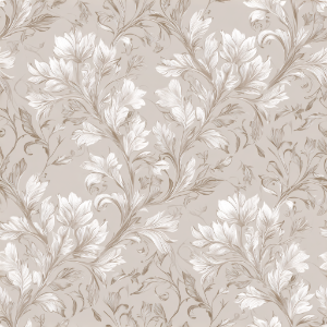 A seamless floral arabesque pattern in beige tones with elegant botanical symmetry and classic charm.